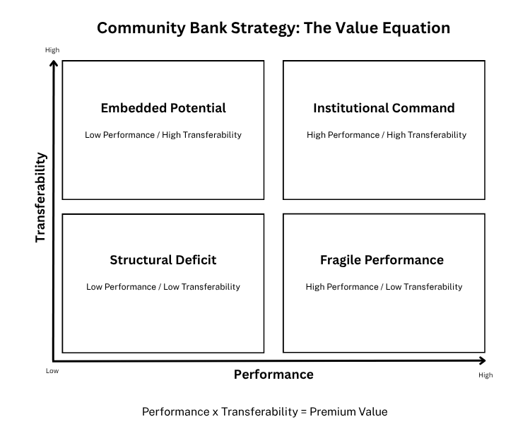 For leaders who want to explore how performance and transferability are evaluated in real institutional settings, the Community Bank Value™ Strategic Briefing examines these structural drivers in greater depth.